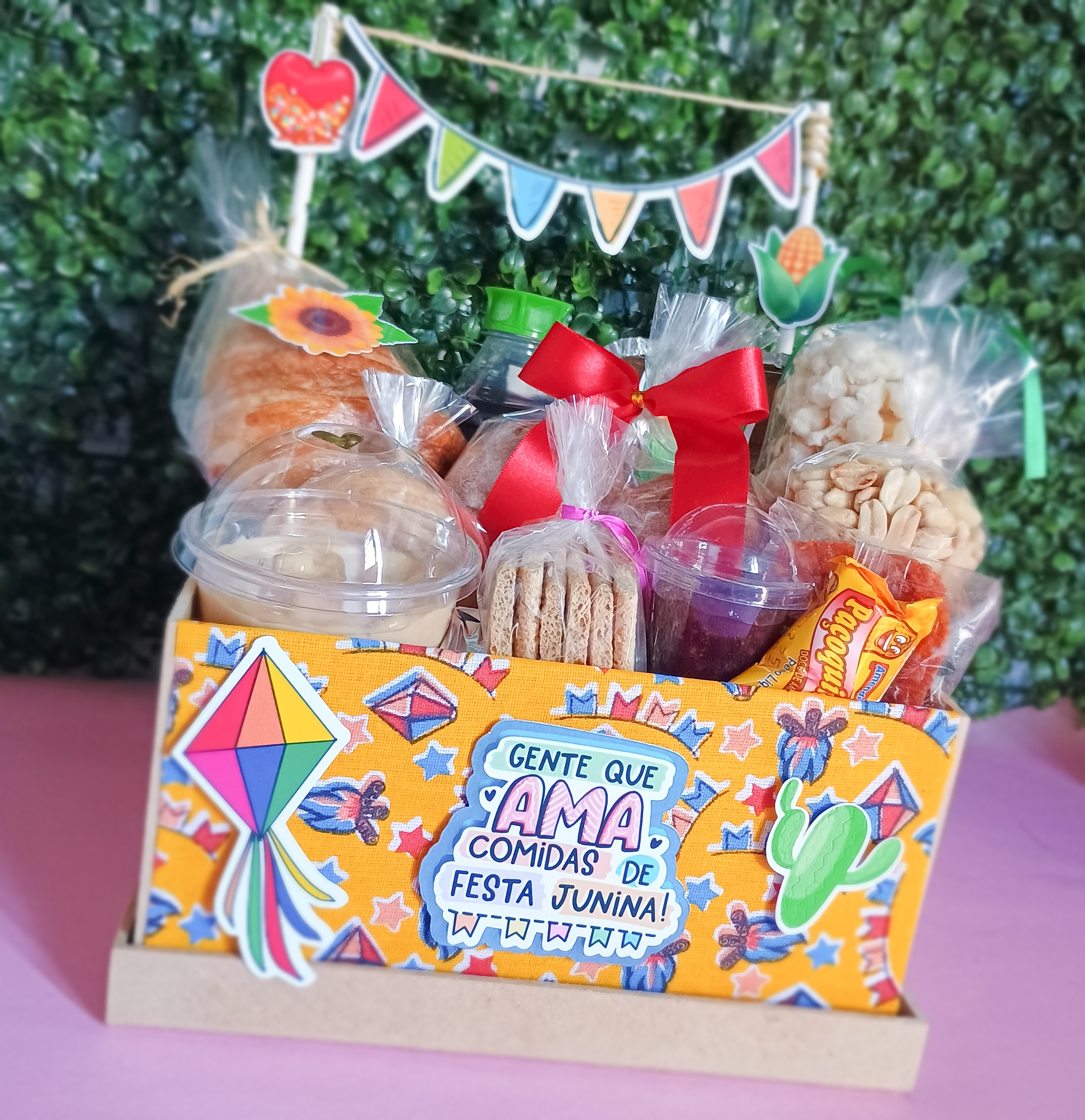 Esta cesta é perfeita para uma pessoa que ama comidas de festa junina e que faz aniversário entre os meses de JUNHO e JULHO.